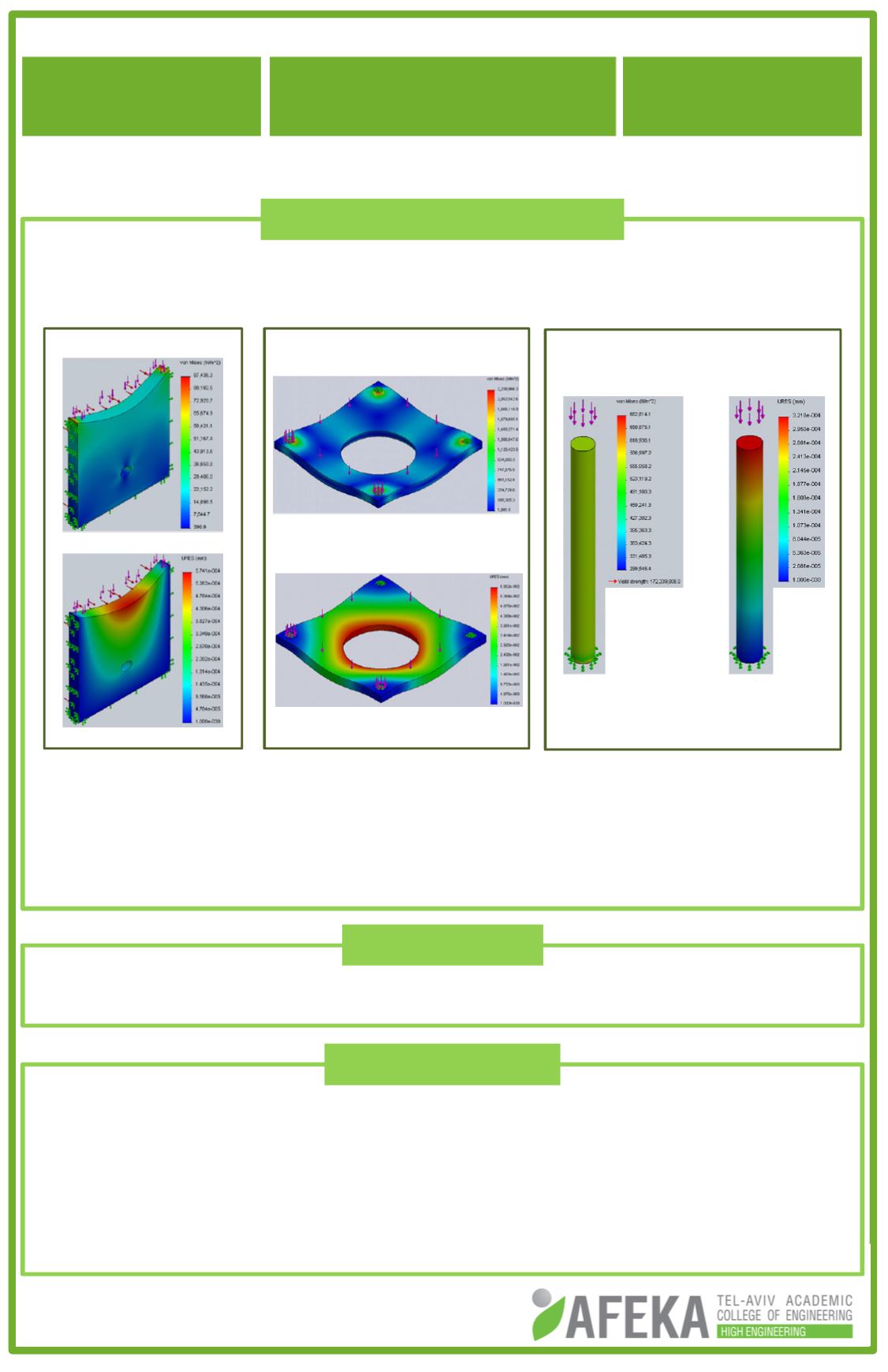 Three critical partswere examined in order to confirm their stability under the applied load.